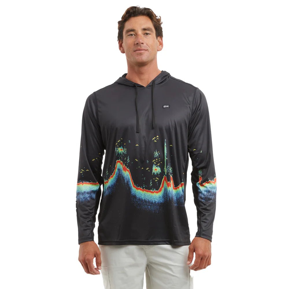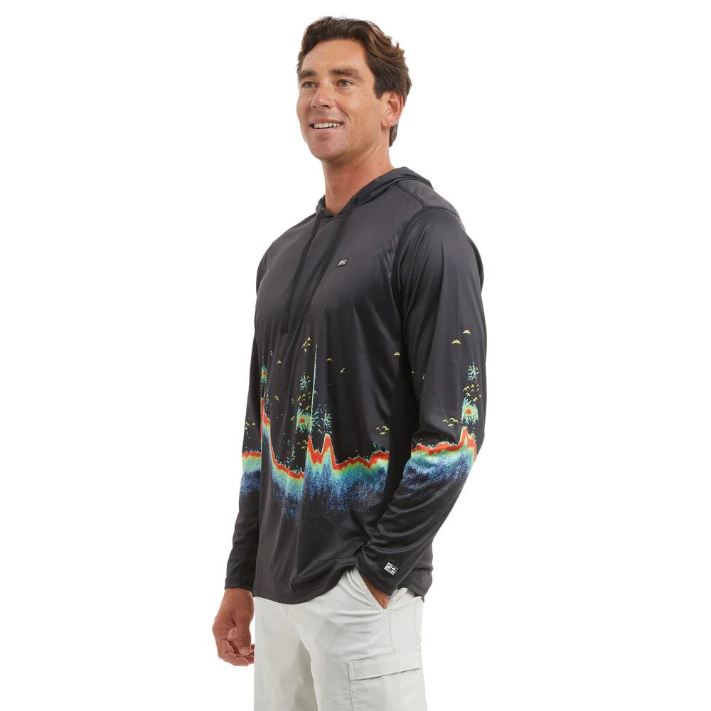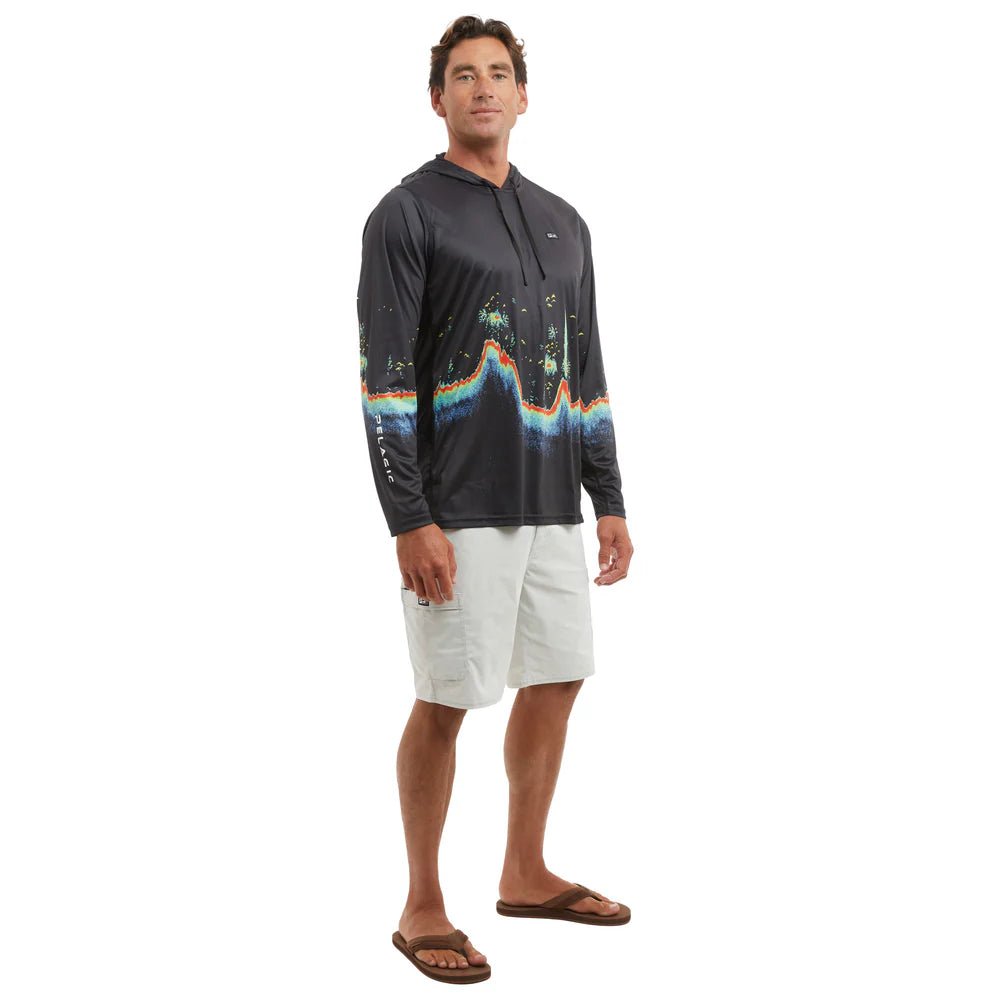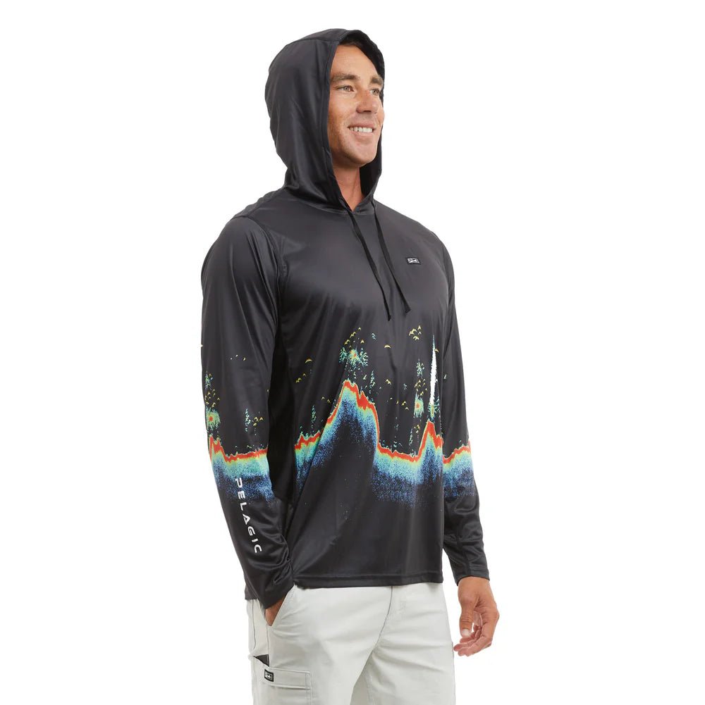 The Pelagic Vaportek Men's Hooded Fishing Shirt in Tahiti Blue is perfect for avid fishing enthusiasts. With 50+ UV protection, ventilation for air flow, and water/stain repellency, this ultra light shirt offers comfort and sun protection. Made from 100% recycled polyester, it also features 4-way stretch for ease of movement.